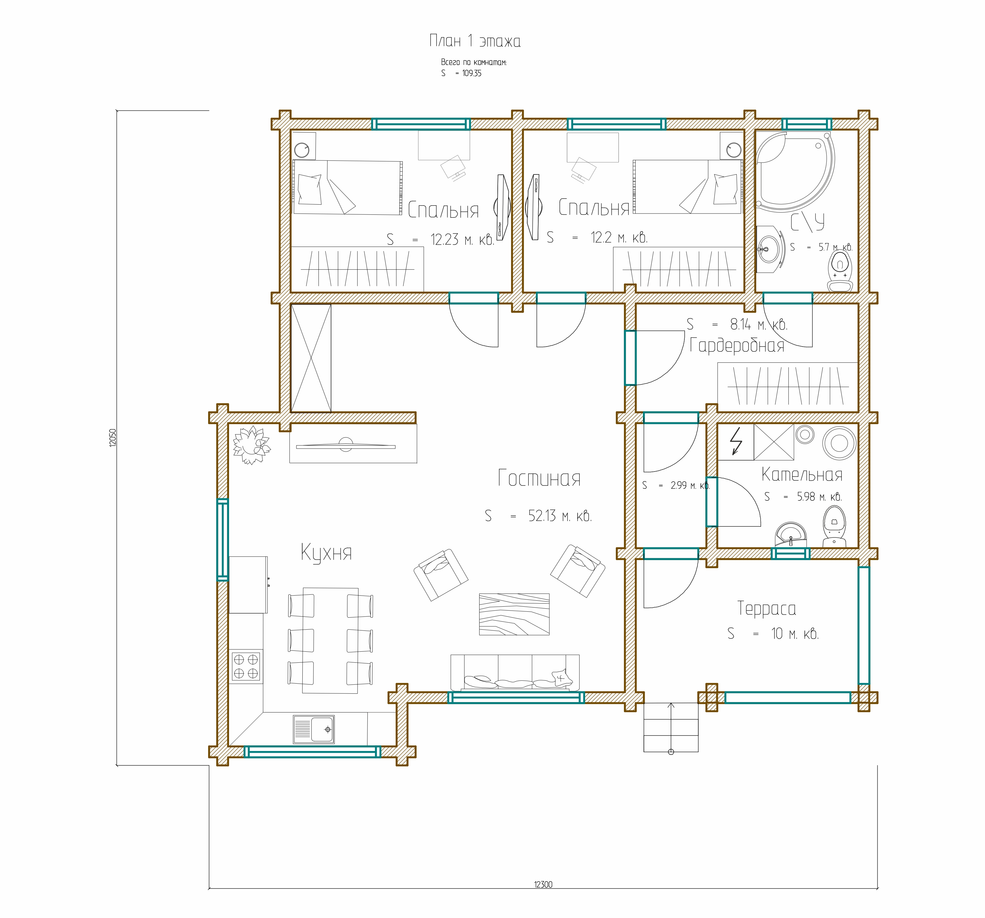 Площадь 1 этажа: 109 м